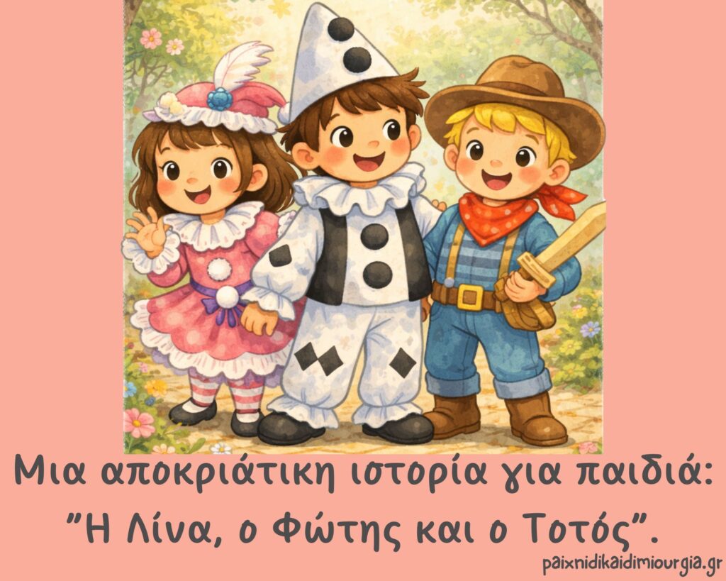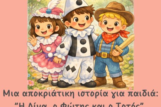 Στην σημερινή ανάρτηση θα σας παρουσιάσω μια αποκριάτικη ιστορία για παιδιά, εμπνευσμένη από το παιδικό αποκριάτικο τραγούδι “Η Λίνα, Ο Φώτης και ο Τοτός”. Οι Απόκριες είναι μια από...